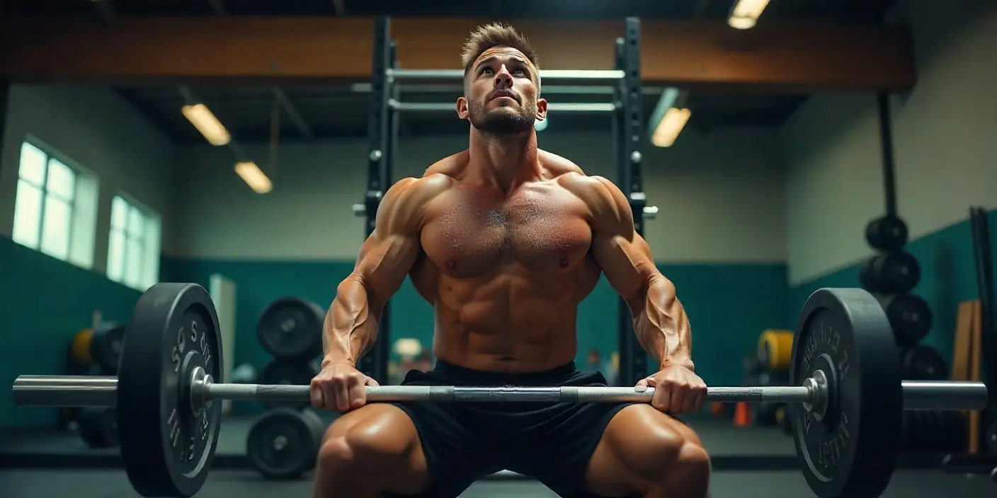 Atleta realizando una rutina de fuerza avanzada con barra para mejorar fuerza máxima y potencia